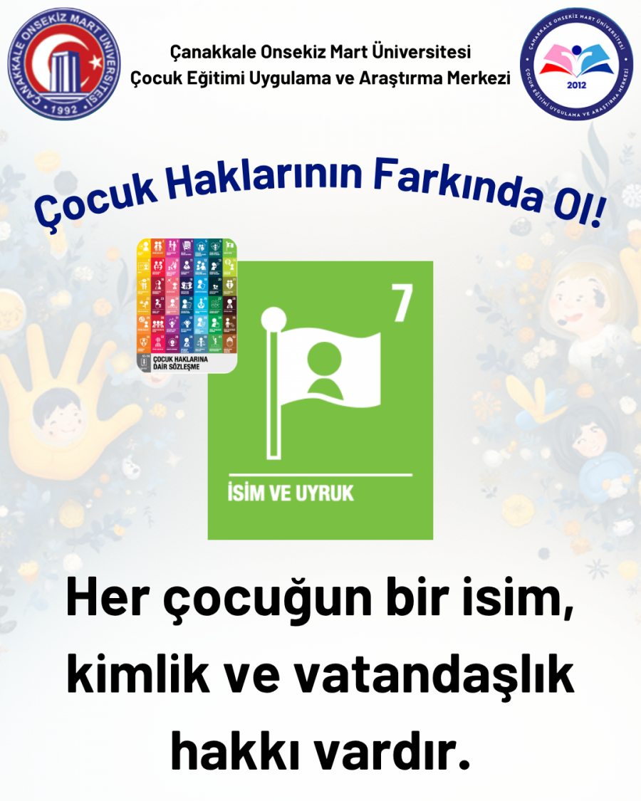 Sonuç olarak, isim, kimlik ve vatandaşlık hakkı bir çocuğun hayata adım atarken sahip olduğu en temel güvencelerden biridir. Bu hak, bir çocuğun görünür olmasını, korunmasını ve toplumun eşit bir üyesi olarak kabul edilmesini sağlar. Madde 7, bir çocuğun yalnızca doğmasını değil, tanınmasını ve yaşamın her alanında yer bulabilmesini güvence altına alır. Her çocuk, doğduğu andan itibaren bir kimliğe sahip olmayı ve bu kimlikle toplumda yer edinmeyi hak eder.