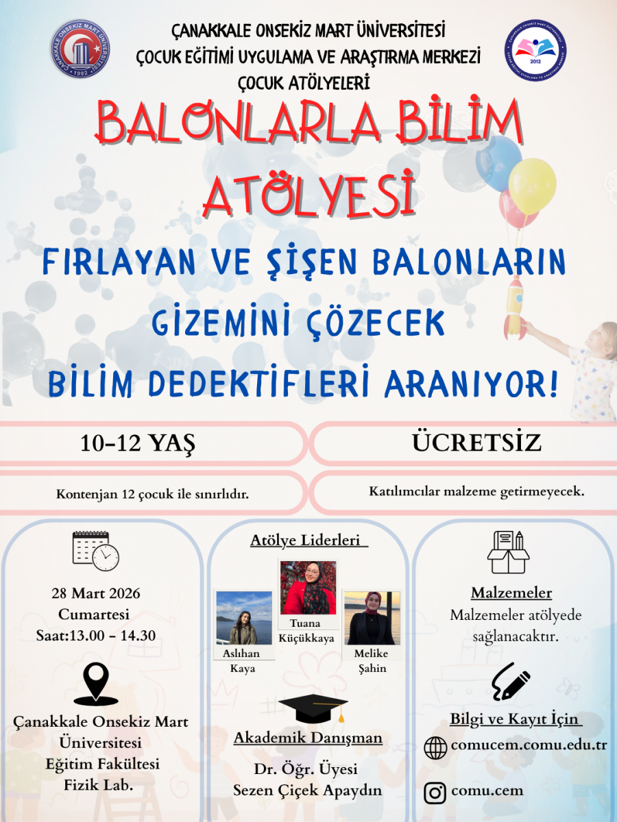 Bu atölye, çocukların mantıksal düşünme, karar verme ve sosyal etkileşim becerilerini geliştirmeyi hedefleyen, yaş grubuna uygun ve güvenli bir öğrenme ortamında gerçekleştirilecektir.