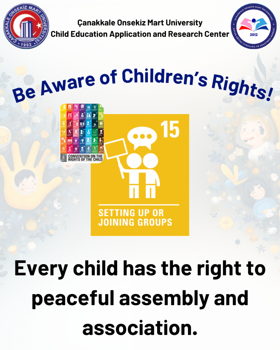 Article 15 of the Convention on the Rights of the Child guarantees every child the right to peaceful assembly and freedom of association. This right not only includes children’s ability to join social groups, but also enables them to form communities, build solidarity, unite around shared goals, and collectively raise their voices on social issues. In this sense, Article 15 is one of the essential foundations of children’s participation in social and democratic life.