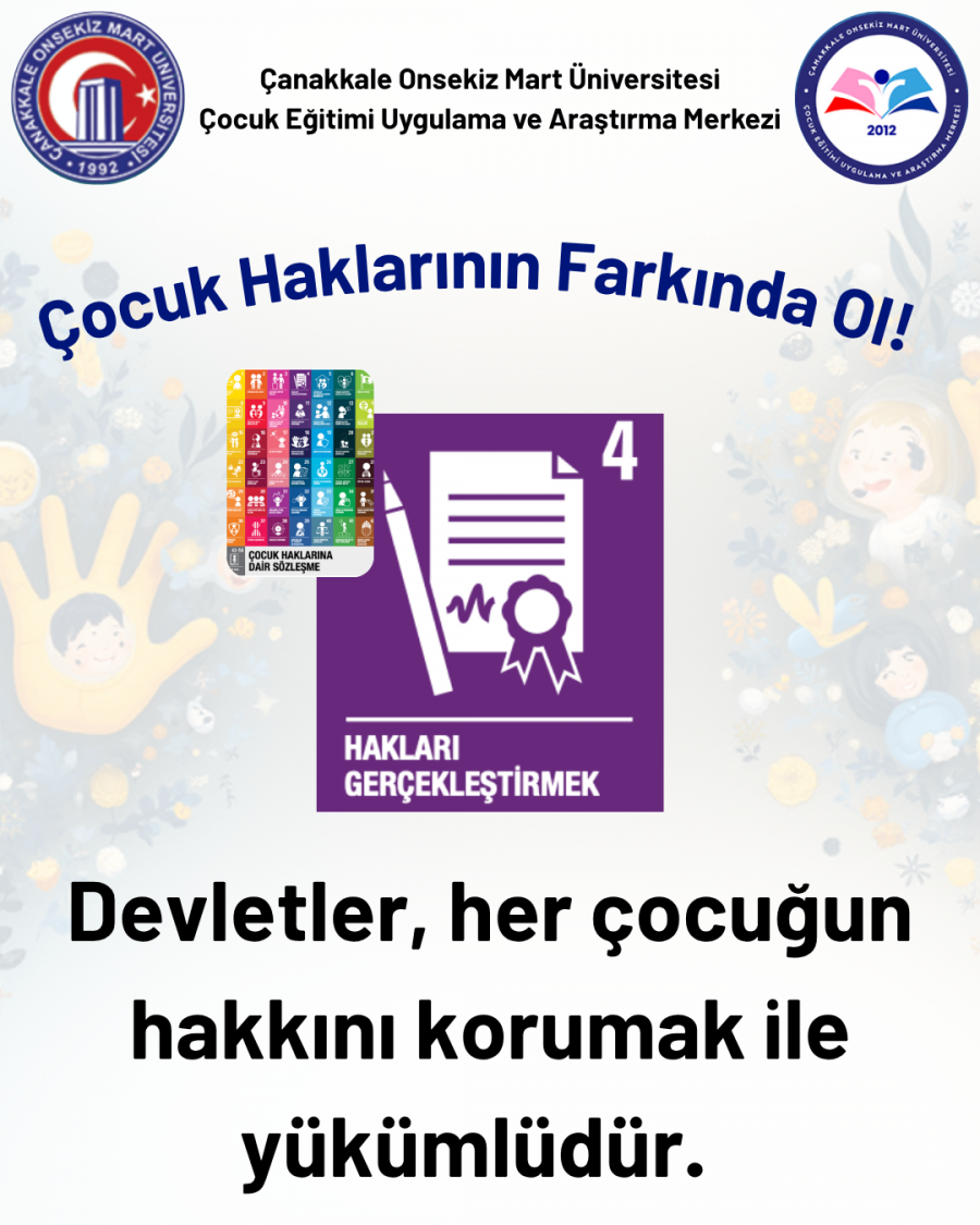 Birleşmiş Milletler Çocuk Haklarına Dair Sözleşme’nin 4. maddesi, taraf devletlere açık bir yükümlülük getirir: